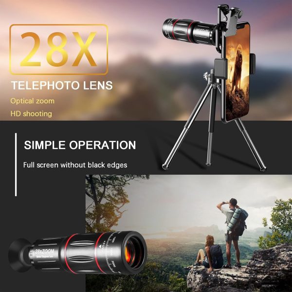 Phone Camera Lens Kit 28X Macro Lens for iPhone with E-Clip and Tripod, Suitable for Most Smartphones