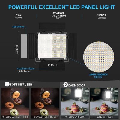 GVM 2 Pack LED Video Lighting Kits with APP Control, Bi-Color Variable 2300K~6800K with Digital Display Brightness of 10~100% for Video Photography, CRI97+ TLCI97 Led Video Light Panel +Barndoor